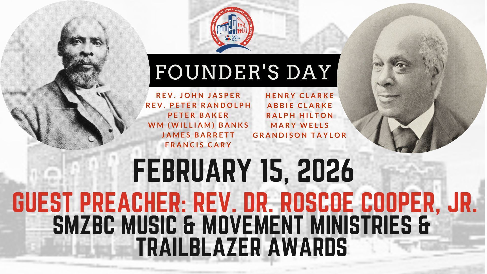 Membes who are able are asked to give an additional $10.00 (or more) above their Tithes & Offerings for Founders' Day. Our budget goal for Founder's Day is $2,000.00, so that means we need 200 members to contribute. Please note on your envelope or online gift if it is for Founder's Day.
