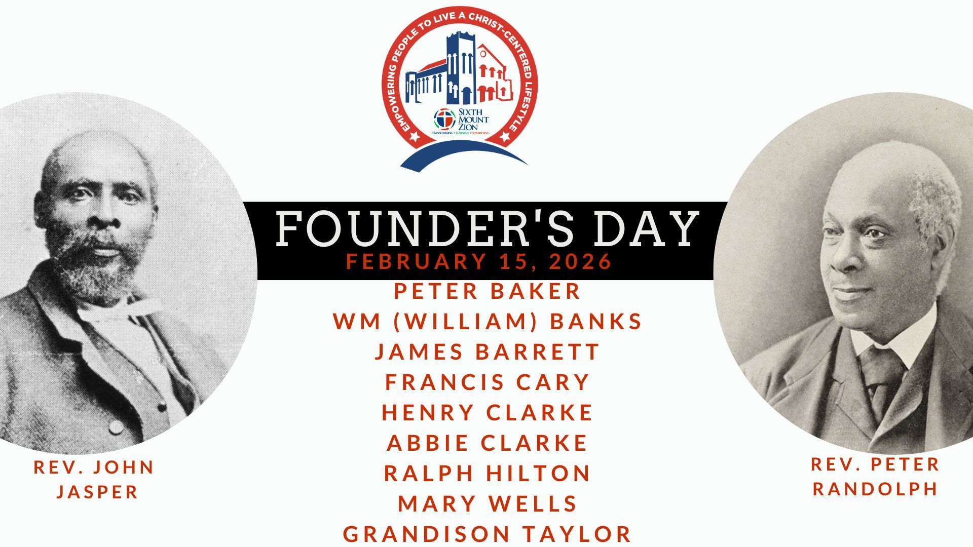 Membes who are able are asked to give an additional $10.00 (or more) above their Tithes & Offerings for Founders' Day. Our budget goal for Founder's Day is $2,000.00, so that means we need 200 members to contribute. Please note on your envelope or online gift that it is for Founder's Day.